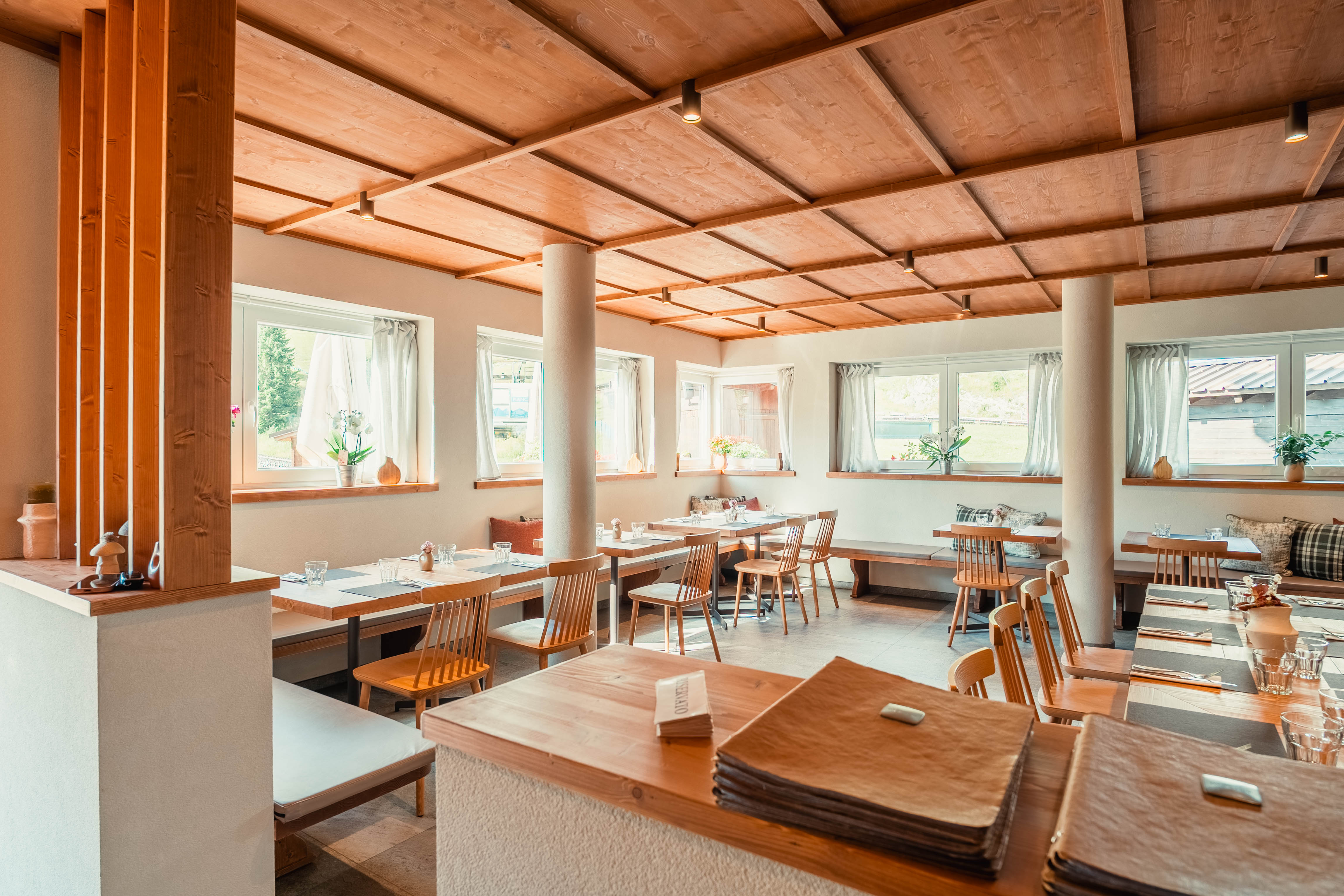 Il nostro locale rinnovato mantiene il calore e l'autenticità della tradizione montana, offrendo un ambiente dove ogni ospite si sente a casa. L'arredamento in legno naturale e i dettagli curati creano l'atmosfera perfetta per momenti indimenticabili.